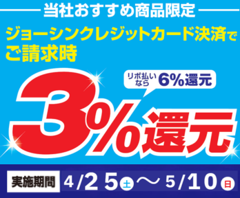 【特別企画】ジョーシンクレジットカード決済で『3%』還元!